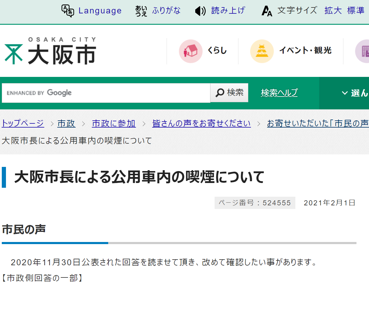 大阪市長が公用車で喫煙 同乗者に受動喫煙を強制 公益社団法人 受動喫煙撲滅機構